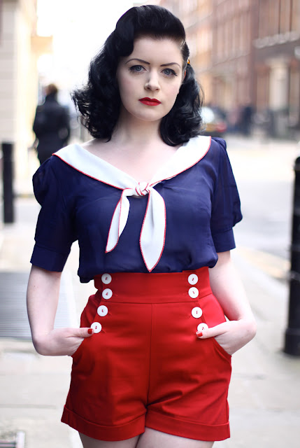 But then I was looking at some 1950s pin-up photos, a favorite outfit inspiration source of mine, and saw an awesome pair of SAILOR SHORTS!